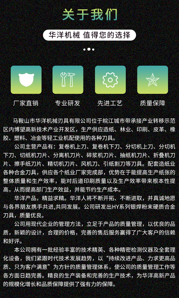 馬鞍山市華洋機(jī)械刃具有限公司 版權(quán)所有 免責(zé)聲明 皖I(lǐng)CP備2022002938號(hào)-1 營(yíng)業(yè)執(zhí)照